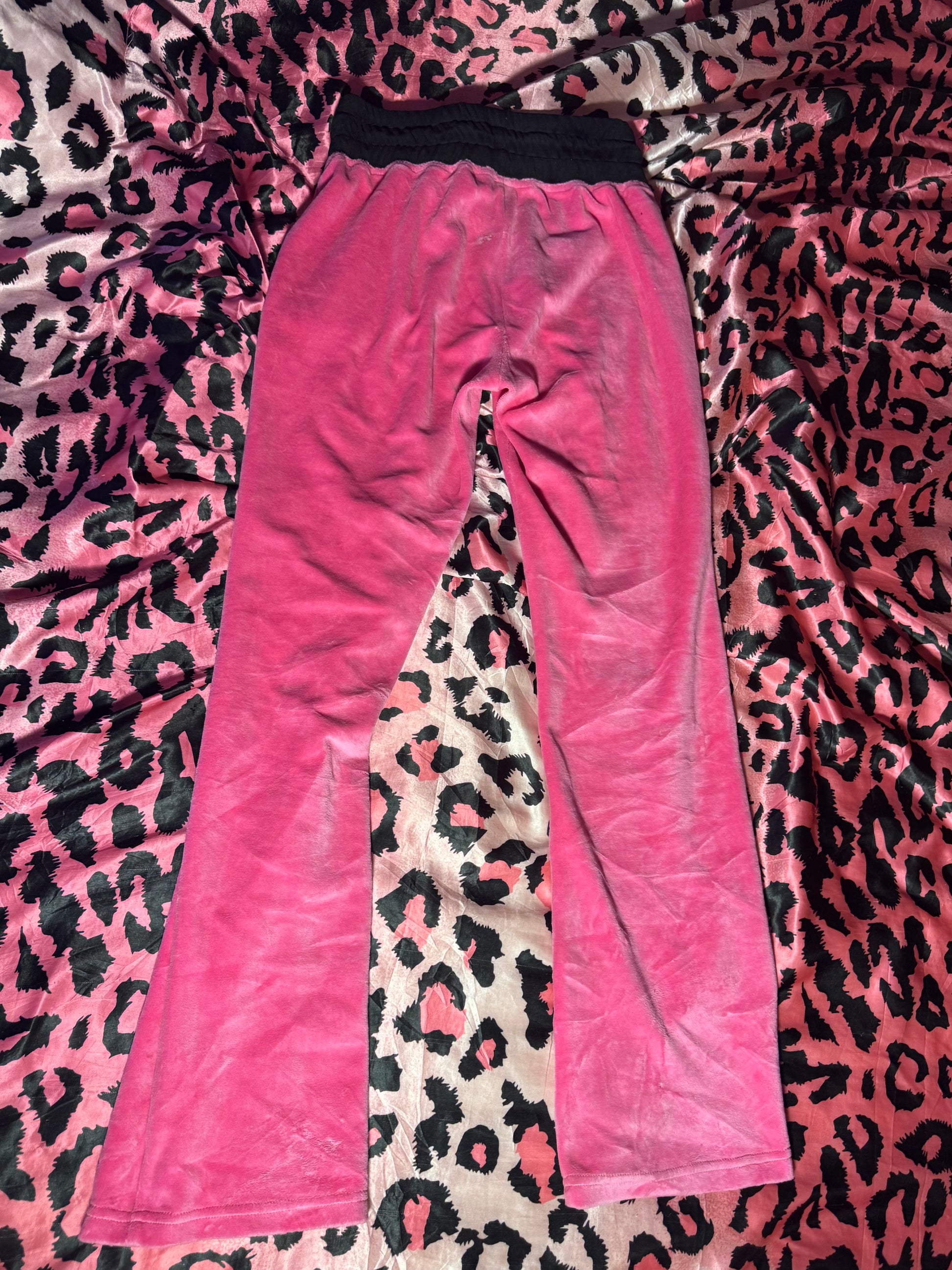 This 2000s inspired black and pink cotton velour tracksuit pants is the ultimate dream pants.