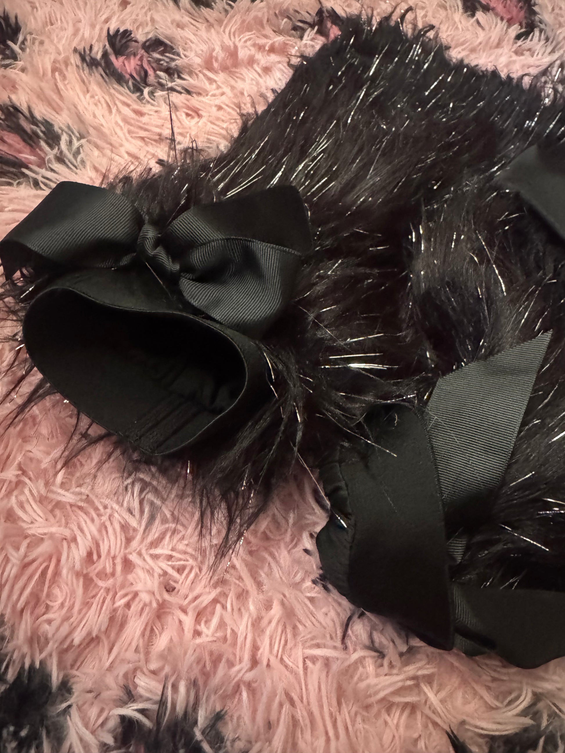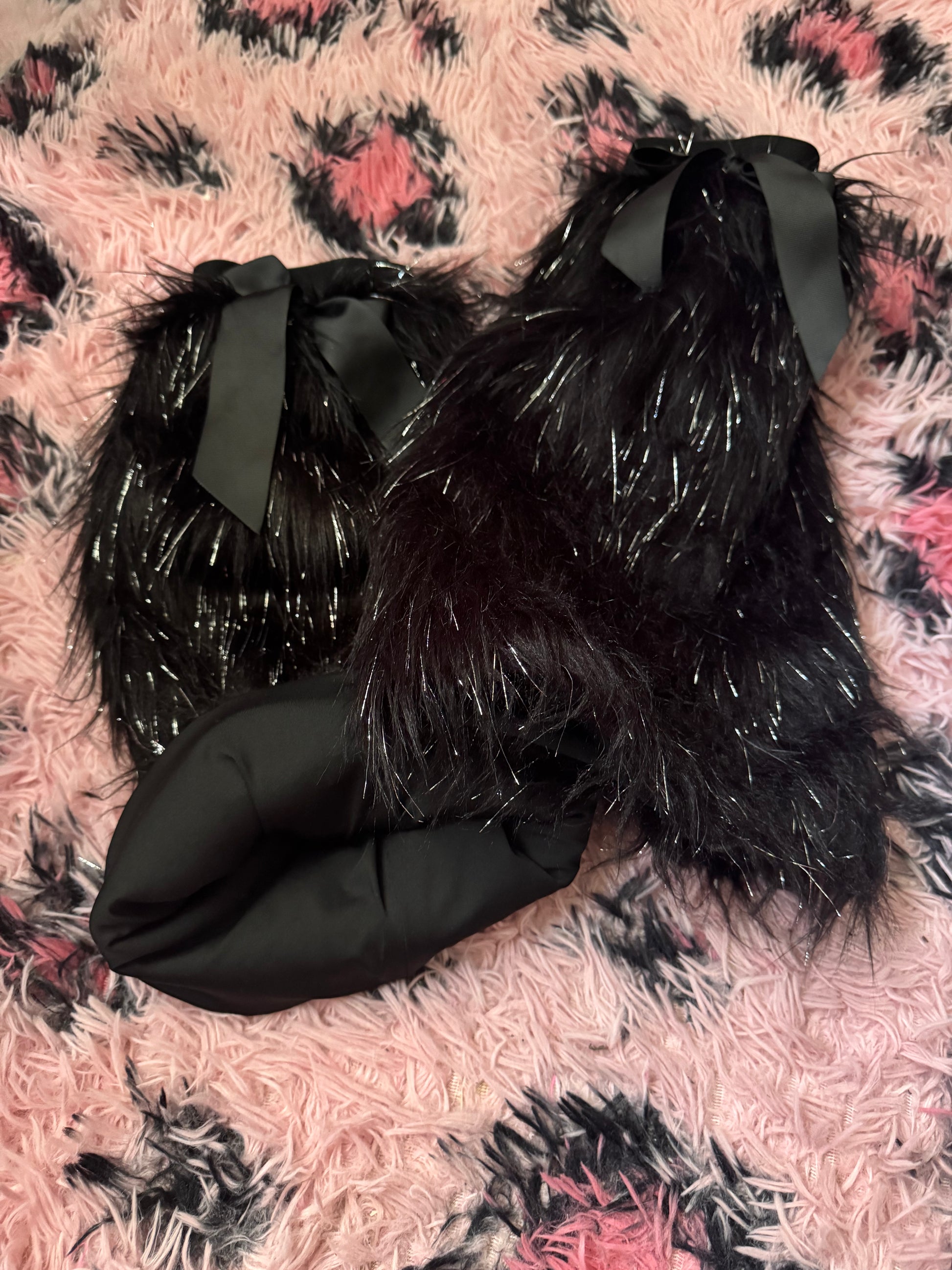 These black with silver tinsel soft fluffy leg warmers are the perfect accessory to complete any outfit for everyday wear. Crucial for ravers who want to dance in style or for creating the ultimate 2000s inspired outfits.